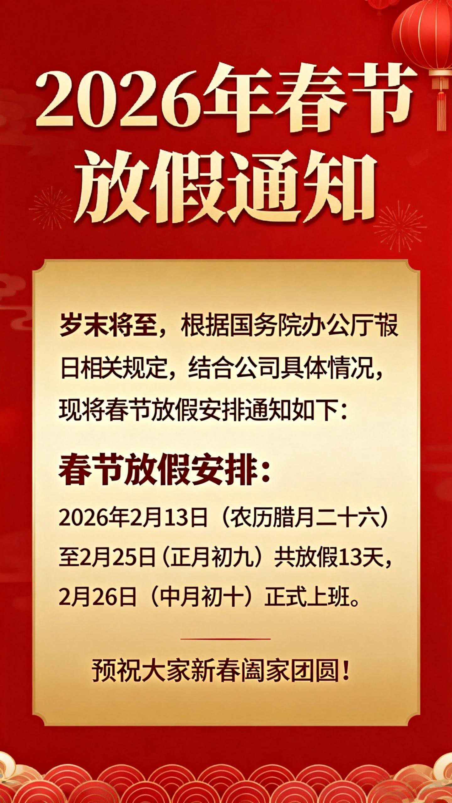 2026年春节放假通知